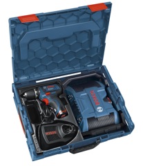 Elle est également disponible en coffret L-Boxx avec la perceuse-visseuse sans fil GSR 10,8-2-LI Professional Bosch, deux batteries de 1,3 Ah et un chargeur rapide.