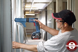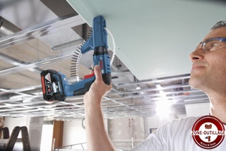 Une vaste gamme d'accessoires vient compléter l'équipement de la visseuse pour plaquistes sans-fil, avec notamment le dispositif de chargement MA 55 Professional pour les bandes de vis Bosch. Une bande comporte 50 vis, ce qui la rend idéale pour le vissage en série ou pour travailler en hauteur de manière particulièrement rapide et efficace. Le bouton de blocage du variateur électronique permet de travailler sans fatigue. La butée de profondeur réglable garantit, en outre, une profondeur de vissage exacte, même à pleine vitesse.
