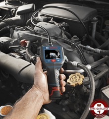 En coffret L-Boxx, elle est équipée d’une batterie Lithium-Ion Bosch d’une autonomie de 7 à 15 h, d’un câble étanche de 122 cm avec une tête de caméra de 17 mm, et d’une interface video out pour la transmission externe d’images. Elle existe avec un câble de 9,5 mm pour les garagistes et les concessionnaires automobiles.