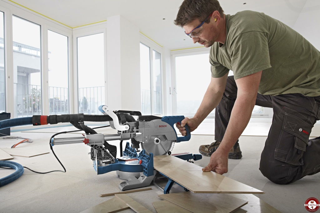 La nouvelle scie radiale à coupe d’onglets GCM 8 SJL Professional Bosch a été spécialement conçue pour la découpe de pièces larges : grandes lames de parquet massif ou stratifié, lames de plancher ou de terrasse, pièces de mobilier et conduits de câbles. Elle assure dans le sens horizontal une capacité de coupe de 312 mm, sans équivalent à ce jour dans les outils de sa catégorie. Pour Christof Weitbrecht - Chef produit Bosch en Allemagne, les artisans ont besoin de largeurs de coupe toujours plus grandes « La tendance actuelle est la même pour les revêtements de sol que pour les carrelages : les grands formats tendent à remplacer les petits formats. Aujourd’hui, on trouve dans le commerce des lames de plancher jusqu’à 310 mm de largeur. »