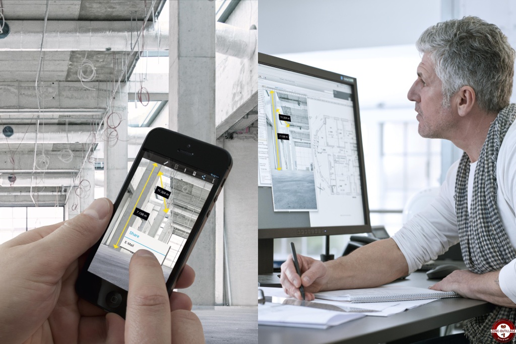 La connexion Bluetooth entre son Smartphone / tablette et son télémètre GLM 100 C Professional Bosch via l’application dédiée offre de nombreuses utilisations. Il est désormais possible d’intégrer directement sur une photo du chantier toutes les valeurs mesurées par le télémètre. Grâce au GLM 100 C Professional Bosch, l’artisan pourra visualiser avec précision l’ensemble des informations ainsi que rajouter des commentaires, créer des dossiers par chantier ou encore envoyer par mail les photos.