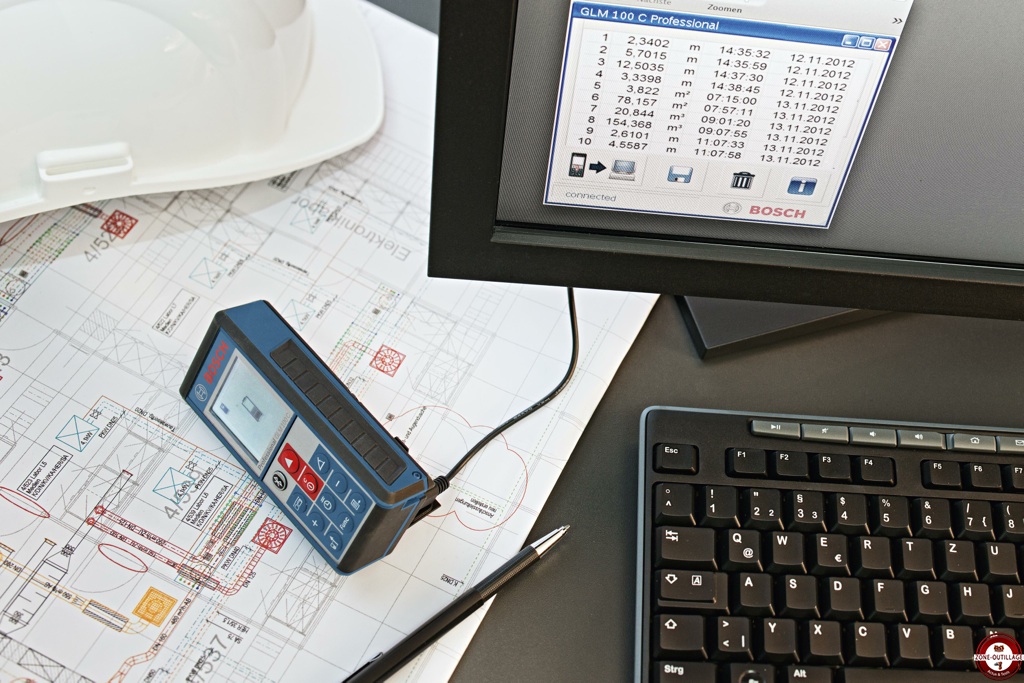 Le nouveau télémètre GLM 100 C Professional Bosch offre désormais la possibilité de connecter son télémètre à son ordinateur via une prise USB pour exporter les mesures réalisées en tableau Excel ou en format texte. L’artisan pourra trouver le détail des 50 dernières mesures réalisées avec l’unité (m, m², m3 ou inclinaison), la date et l’heure. Le transfert des données sur ordinateur rend plus simple la création de devis et l’archivage des informations liées aux chantiers.