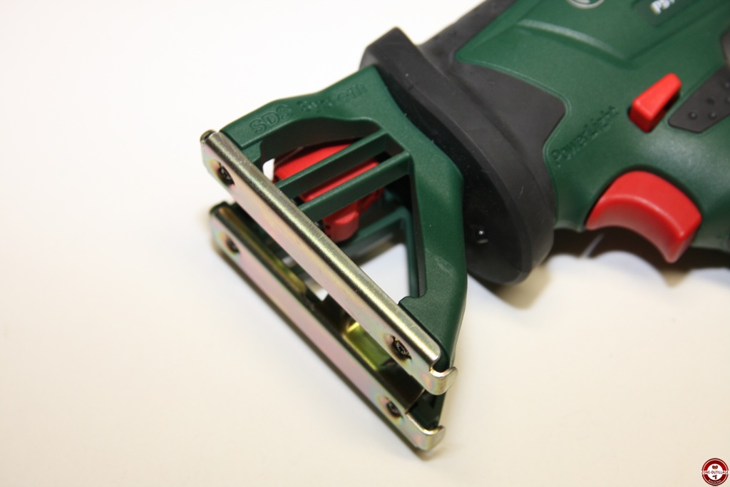 En ce qui concerne le changement de lame, la technologie SDS qui équipe la scie, permet en une pression sur le support de lame, de l’enlever, et d’un clic pour la remettre. Le fait de ne pas utiliser d’outil supplémentaire est appréciable.