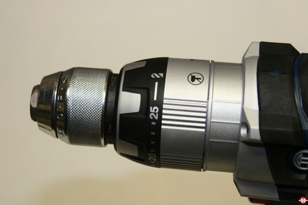 Le test avec un foret à spirale 20×1000 dans du bois dur sont concluants. Avec ses 1800 tr/min le perçage dans l’acier ne lui pose pas de problèmes, le mandrin assure une bonne prise du foret HSS. Venons au test de la fonction percussion. Nous avons réalisé des tests avec des trous de 6,8,10,12 et 14mm dans différents matériaux (brique, parpaing...).