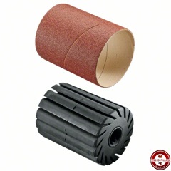 Enfin nous avons utilisé le rouleau abrasif 60 mm avec un grain de 80. Cet accessoire est adapté pour éliminer le vernis et les peintures. La puissance et la vitesse de rotation de la PRR 250 ES permettent à la fois le dégrossissage et la finition en adaptant le grain adéquat.