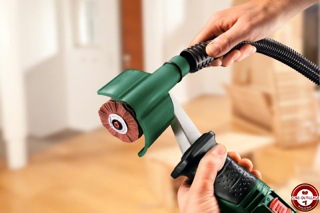 Des brosses de ponçage flexibles qui s’adapteront sur des surfaces Profilés. Même si la PRR 250 ES est parfaite pour le ponçage du bois, elle sera s’adapter au ponçage du métal pour enlever la rouille de vos chaises en fer forgé ou encore la peinture du portail grâce à la brosse en laiton également disponible en option.