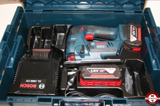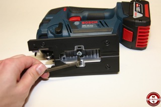 Le système de soufflerie est efficace pour chasser la sciure à mesure. La GST 18 V-LI est alimentée par une batterie dotée de la nouvelle génération CoolPack 18 Volts 4.0Ah, très légère. Par rapport aux anciennes versions 3.0Ah, vous disposez jusqu’à 65% d’autonomie en plus. En usage extrême, la machine est dotée du système EMP (protection électronique du moteur) qui protège le moteur contre les surcharges et sur la batterie, le système ECP (protection électronique des cellules) Bosch qui protège la batterie contre la surcharge, la surchauffe et la décharge totale. Lors de notre test, nous nous sommes déplacés à différents endroits afin d’effectuer les coupes. Quel confort et gain de productivité de ne pas avoir à s’encombrer avec un fil !