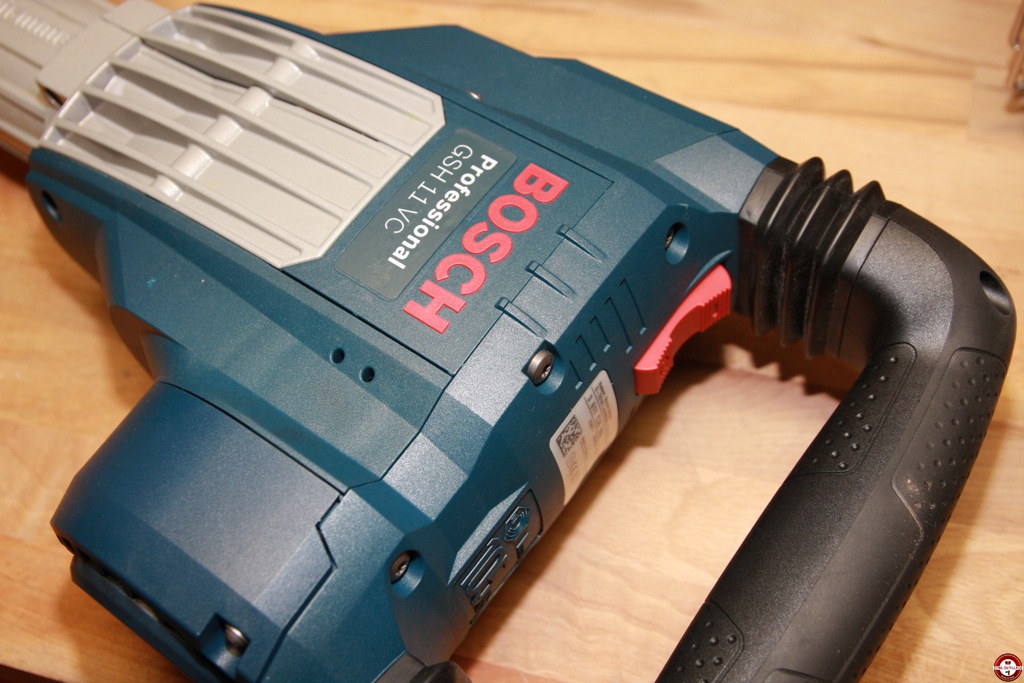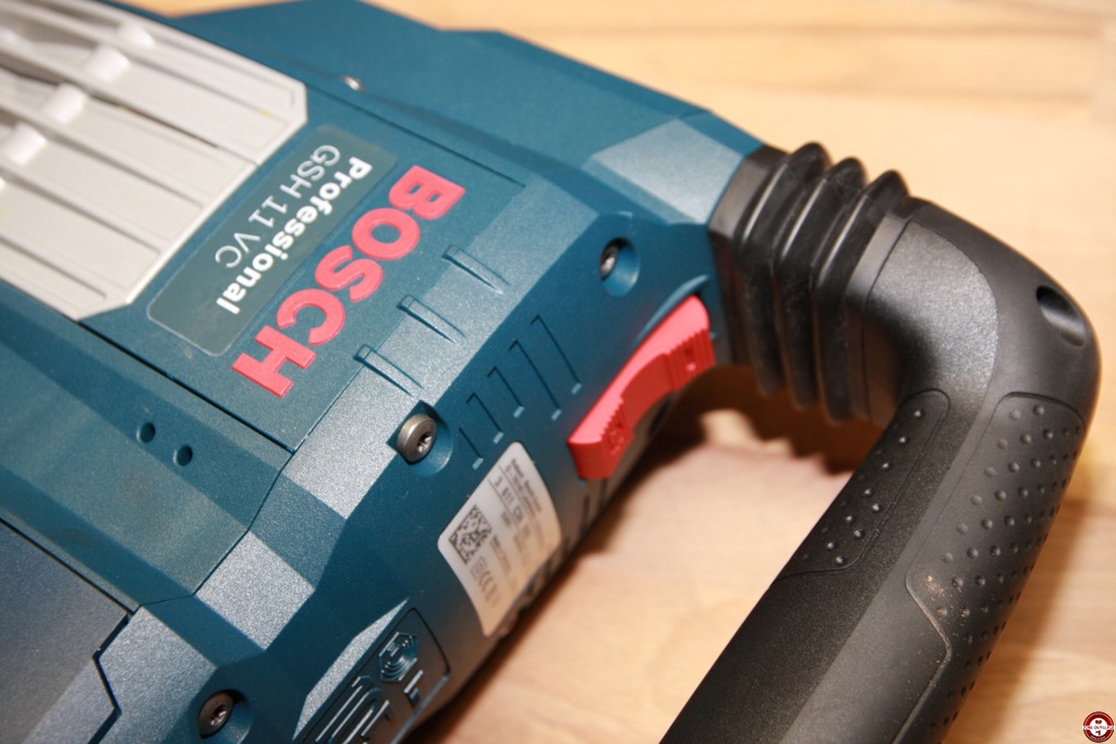 Le brise-béton Bosch GSH 11 VC Professional est équipé d’un emmanchement SDS max permettant un changement rapide et sans outil des accessoires. La fréquence de frappe est réglable de 900 à 1700 tr/min grâce à une molette située au-dessus de la machine. À proximité, un voyant de maintenance indiquant 8 heures à l’avance le remplacement des charbons ce qui permet d’être averti sans pour autant cesser le travail. L’outil se met en marche avec un bouton situé en dessous de la poignée principale, il est anti-poussière et se manipule ganté. La machine est livrée avec un coffret de transport, celui-ci n’était pas disponible au moment du test.