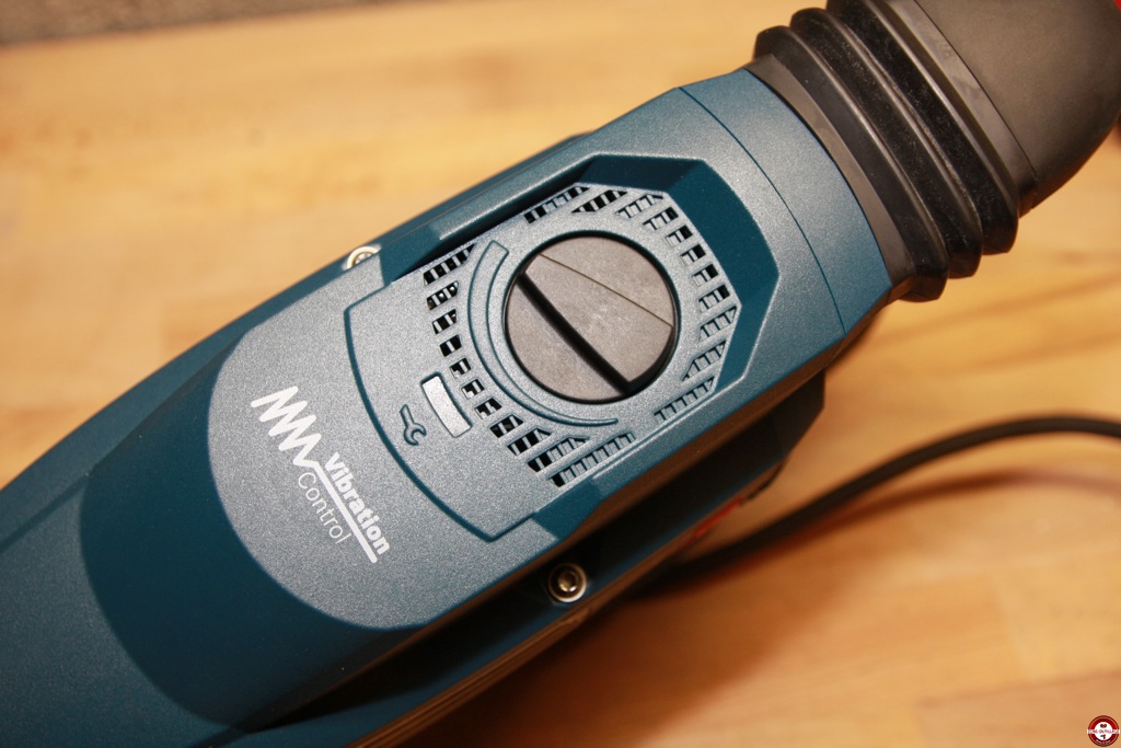 À l’usage le système s’avère efficace. Pour les professionnels qui n’ont jamais utilisé de brise béton avec un système anti-vibration, les 10 premières minutes sont un peu déroutantes du fait que l’on ne ressent que très peu de vibrations. Le moteur de 1700 watts et la puissance de frappe de 23 joules permettent d’obtenir une capacité d’enlèvement d’environ une tonne par heure. La taille de la machine et les 11 kg facilitent la prise en main et le maniement. Lors de travaux intensifs, la fatigue se fait moins ressentir. Sa forme allongée et le Vario-Lock-System permettent de régler la machine en fonction de l’utilisation, un plus pour le confort de l’utilisateur notamment pour les travaux au sol. La puissance de frappe est réglable avec la molette, l’indication n’est pas très lisible surtout lorsque le marteau-piqueur est recouvert de poussières, mais cette fonction s’avère utile pour s’adapter au matériau.