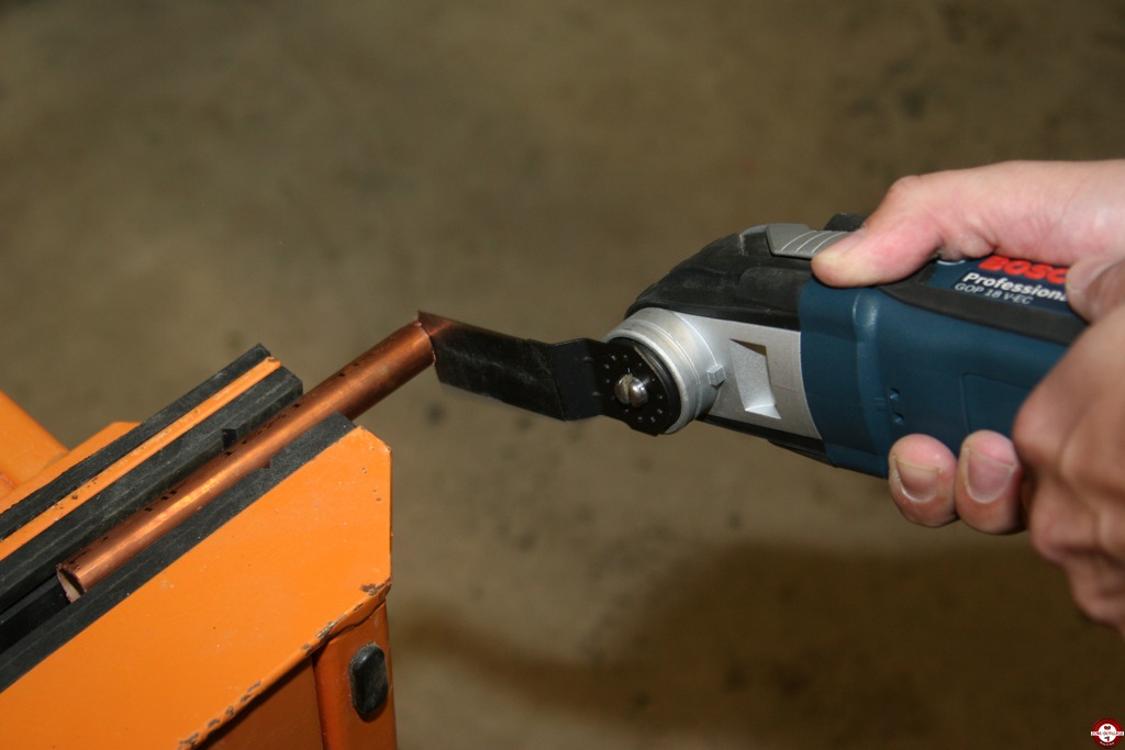 Le découpeur ponceur est un outil polyvalent qui permet d’être utilisé par différents corps de métiers comme les agenceurs, plombiers, électriciens... Lors de notre test nous avons sollicité le GOP 18 V-EC pour la découpe de tube en cuivre et métal avec l’accessoire adapté.