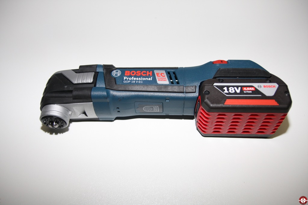 Précédemment nous avions testé le modèle haut de gamme de Bosch le GOP 300 SCE que nous utilisons régulièrement tant le découpeur ponceur permet de réaliser différents travaux grâce à la multitude d’accessoires disponibles. Le nouveau GOP 18 V-EC est livré en coffret L-Boxx avec 8 accessoires, deux batteries CoolPack de 4,0 Ah et un chargeur rapide.