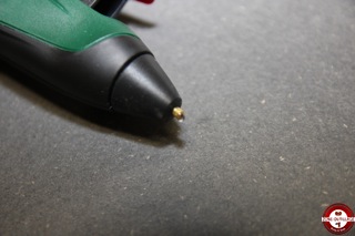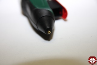 Le GLUEPEN n’échappe pas à la règle, sur le côté, un bouton permet de mettre l’outil en marche. Sur le dessus, une gâchette qui s’active par une simple pression libèrera la colle une fois le GLUEPEN mis en température.