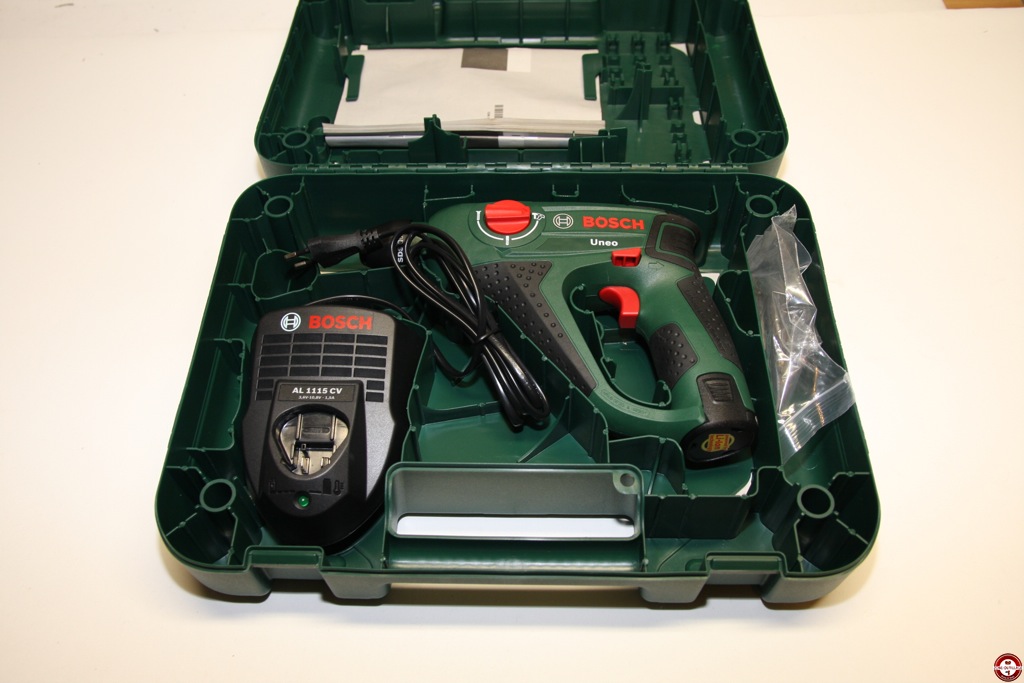 La version Uneo2 Bosch que nous avons testé (réf : 0603984000) est livrée en coffret de transport avec 1 chargeur, une batterie 10,8 V 1,5 Ah et un set d’accessoires. L’outil est maniable, l’ergonomie a été soignée.