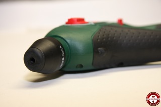 Les accessoires fournis permettent d’avoir un outil prêt à l’usage, mais nous conseillons l’achat d’une boîte d’embouts de vissage supplémentaire qui seront bien plus pratiques que les embouts fournis. Le témoin de charge de batterie visible sur le dessus affiche vert lorsque la batterie est chargée et rouge lorsqu’elle à besoin d’être rechargée. L’autonomie est satisfaisante pour effectuer vos petits travaux. L’éclairage LED efficace est présent sur cette nouvelle version.
