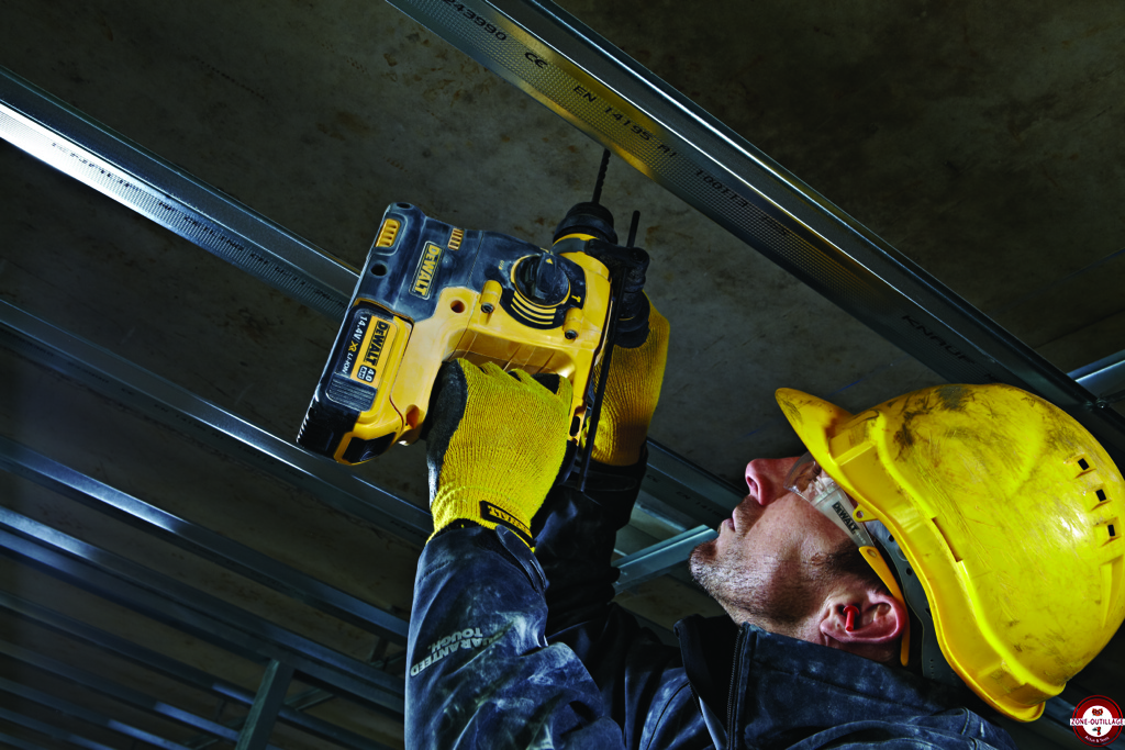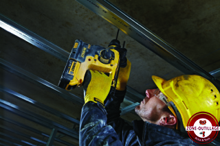 et sécurité d’utilisation. Pesant seulement 3 kg, cet outil permet d’associer légèreté et puissance, avec une énergie de frappe de 2 joules, pour les artisans qui réalisent de nombreux travaux de perçage au quotidien. Particulièrement adapté pour les perçages au plafond, le marteau perforateur sera l’outil idéal pour tous les corps de métiers, en particulier les électriciens qui installent des chemins de câbles, ou encore les poseurs de faux plafonds. La marque jaune et noire n’en a pas moins négligé l’autonomie puisque la batterie 14.4V – 4Ah, qui équipe le DCH143M2, propose une autonomie 33 % supérieure aux batteries 3 Ah. La sécurité est également au rendez-vous : en équipant cet outil d’un système exclusif de ressorts, DeWALT garantit jusqu’à 3 fois moins de vibrations qu’avec un marteau perforateur classique.