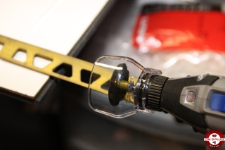 Autre petit défaut : l'accessoire de protection qui se fixe au bout du Dremel qui ressemble à une petite glace de sécurité empêche une bonne partie des découpes que j'ai pu tester...