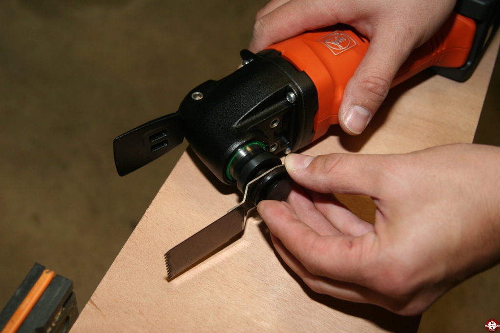Adapté aux travaux d’aménagement et de rénovation, les machines oscillantes de Fein permettent grâce à une large gamme s’accessoires de s’adapter à de nombreuses applications. Lors de notre test nous avons utilisé le Supercut pour découper du cuivre, métal et du bois avec l’accessoire adapté. Le système de changement d’outil sans clé facilite le changement d’accessoires, mais il est resté néanmoins difficile à manœuvrer.