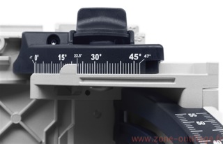 Les points de crantage permettent d'obtenir des angles de coupe compris entre 0° et 45°. Or, ce n'est un secret pour personne : les angles exacts sont, sur le chantier, une denrée rare. Ce point a fait l'objet d'une attention particulière lors de la conception de la nouvelle TS 55 R. Ainsi, grâce au réglage angulaire avancé de -1° à 47°, il est désormais possible de réaliser des contre-dépouilles et des angles d'une grande précision.