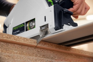 Il arrive que des coupes plongeantes de haute précision soient requises, par exemple pour les coupes de plans de travail de cuisine. Festool a la solution adaptée : une fenêtre d'inspection transparente offre une vue parfaite sur la lame de scie et sur un éventuel marquage de la pièce à travailler. Le résultat ne se fait pas attendre : la coupe s'arrête juste à l'endroit prévu. L'échelle de profondeur de coupe double avec ajustement précis permet d'obtenir des résultats très précis. De la même manière, la lecture et le réglage des profondeurs de coupe sont simples et rapides avec ou sans rail de guidage. Le rail de guidage et le pare-éclats spécial garantissent des coupes nettes et sans éclats. Il n'est ainsi plus nécessaire d'effectuer des retouches. Les joues de guidage peuvent être réglées sans outil sur le rail de guidage et la scie plongeante glisse parfaitement, pour un travail plus agréable.