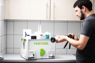 Avec le système mobile Festool, les artisans peuvent toujours avoir avec eux l'équipement requis propre à un atelier. Le transport des outils de travail est facile ; l'outil requis est toujours à portée de main et tout est à sa place. En résumé : des conditions de travail idéales pour des résultats parfaits et immédiats, sans recherche fastidieuse ni retouche.