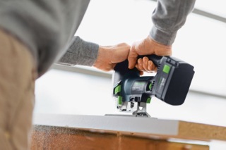 Pose de sols, montage de fenêtres ou aménagement de stands d'exposition, Festool propose aux artisans des éléments mobiles parfaitement adaptés les uns aux autres et se complétant idéalement, qu'il s'agisse des outils, de l'aspirateur, des accessoires ou des consommables. Citons par exemple la nouvelle scie sauteuse sans fil CARVEX PSC 420 : avec 3 800 courses par minute, elle est non seulement puissante et précise, mais elle est également compatible avec les batteries utilisées sur la lampe de travail SYSLITE ou sur la gamme de perceuses/visseuses sans fil. La scie à onglet radiale KAPEX et son châssis conçu spécialement se prêtent très bien à une utilisation mobile. (présentation de la gamme CARVEX)