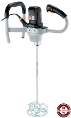 1 200 W : MXP 1202 E EF, équipé d'un réducteur à 2 vitesses, pour un volume de mélange de 70 litres max. Il permet de mélanger de façon fiable de grandes quantités de mortier, béton, enduit.