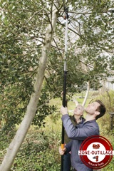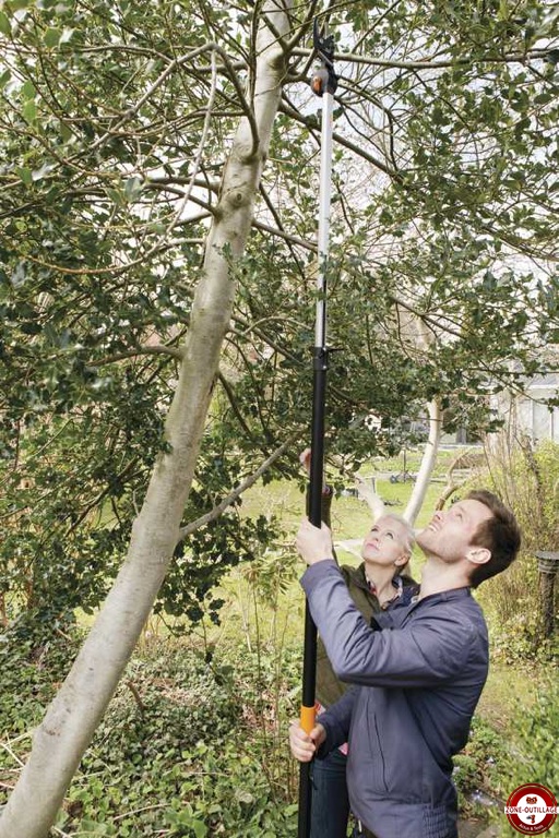 À noter : FISKARS propose différents accessoires adaptables sur son coupebranches télescopique, un cueille-fruits et une scie pour venir à bout des branches les plus épaisses, ainsi qu'un coupe-branches multifonctions UP82 avec manche non télescopique (portée verticale 3,5 m).