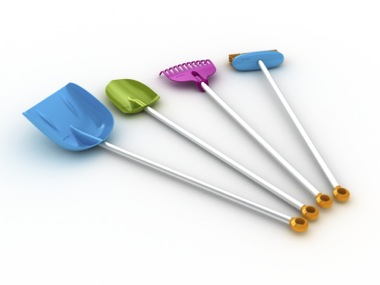 My First Fiskars® comprend 4 grands outils (une pelle à neige bleue, une bêche verte, un balai à feuilles rose et un balai de cantonnier bleu) pourvus de manches en aluminium de haute qualité, de poignées orange typiques de la marque et de têtes robustes en polypropylène (renforcé de fibres de verre pour les outils servant à creuser) et en polyoxyméthylène pour la tête du balai à feuilles (ce qui lui confère une plus grande flexibilité).