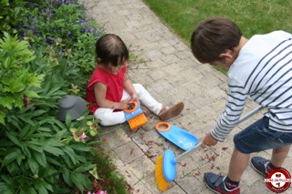 - La brosse bleue permet de balayer les sols ou de nettoyer les outils