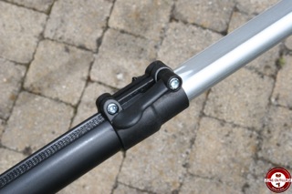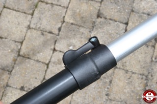 A la base de la perche Fiskars UP86 le ruban noir sur lequel on tire avait fait un tour autour de la base de la perche