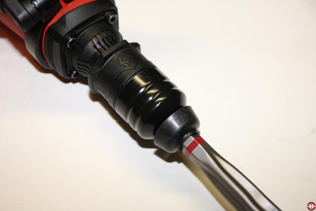 Le mécanisme de percussion et le moteur sont totalement découpés de la coque externe et des poignées grâce à un système de ressorts et de pivots. À noter que le nouveau burineur Hilti TE 800 est compatible avec le système de récupération des poussières DRS-B Hilti.