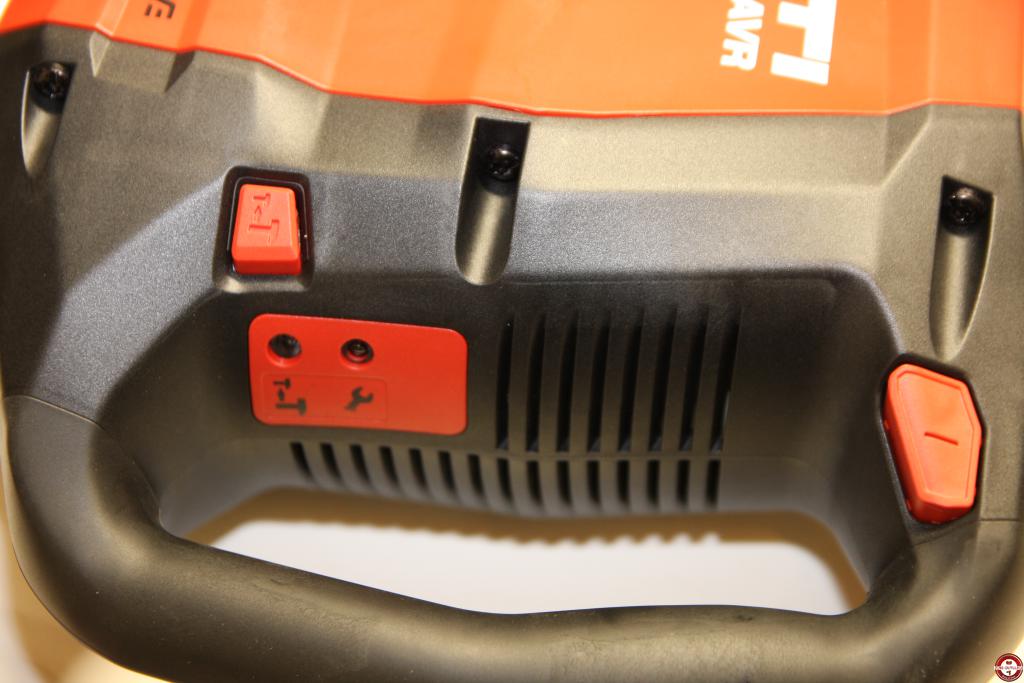 Le burineur Hilti TE 800-AVR est livré en coffret robuste propre à la marque avec deux burins vagues nouvelle génération TE-SP anti-bloquant et auto-affûtant. La prise en main est parfaite. La poignée arrière est bien proportionnée, elle est équipée de deux boutons poussoirs. Sur le haut de la machine, l’interrupteur de marche/arrêt est bien dimensionné, il permet d’être manoeuvré ganté.
