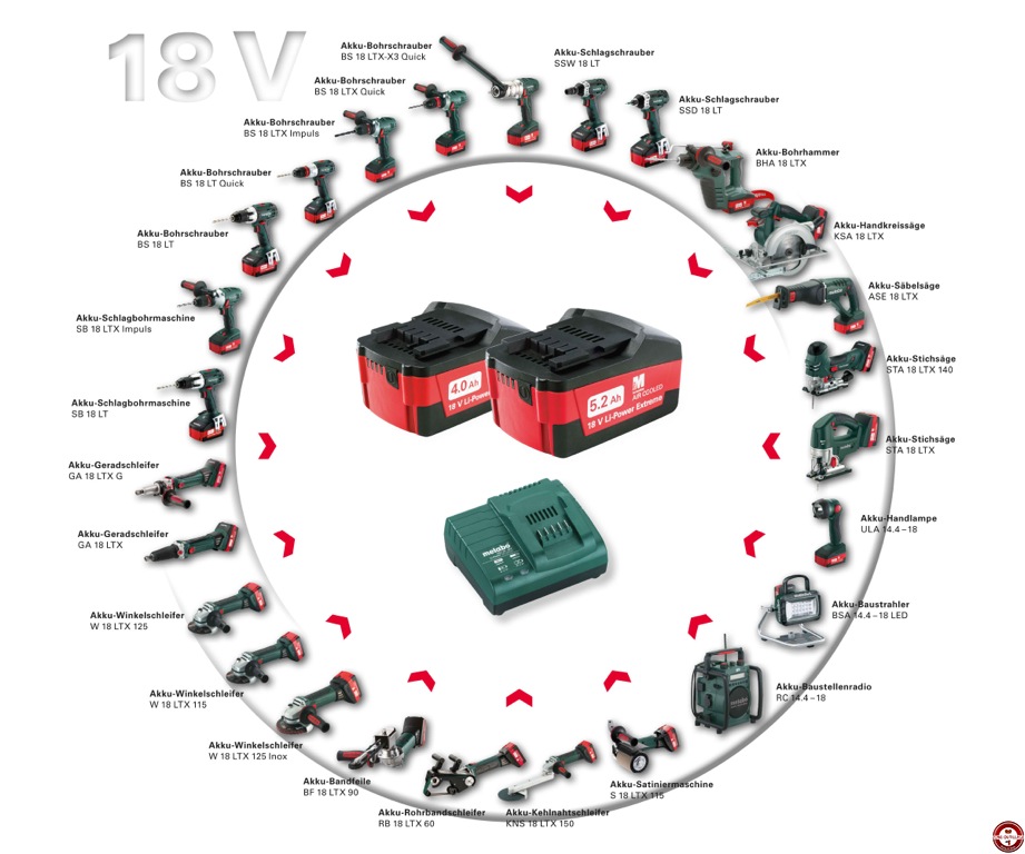 Avril 2013 : La nouvelle génération de batteries 5.2 Ah donne une importante liberté supplémentaire aux utilisateurs professionnels de l'artisanat et de l'industrie – tout simplement parce qu'elle leur permet de travailler très longtemps sans prise. Mais Metabo a poussé encore plus loin le concept de liberté. Pick+Mix, un nouveau système qui permet aux acheteurs de choisir librement parmi toutes les combinaisons possibles de machines, de batteries de 1.5, 4.0 ou 5.2 Ah, de chargeurs, de coffrets et de sacoches pour le transport. Ils peuvent ainsi précisément adapter leur parc de machines à leurs exigences et applications individuelles et achètent et paient uniquement ce dont ils ont réellement besoin et ce qu'ils veulent.