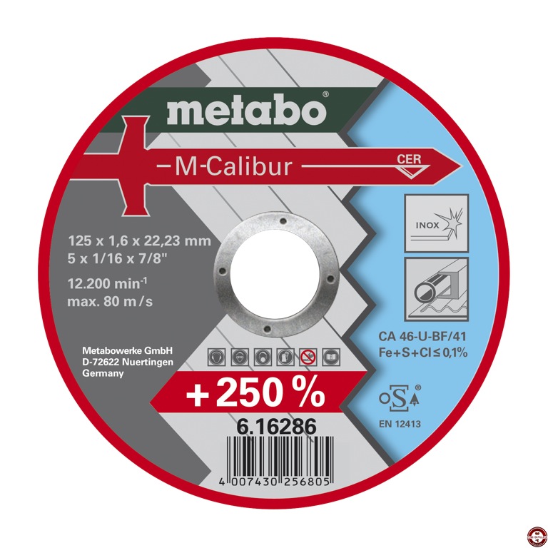 Metabo lance deux nouvelles séries de meules de tronçonnage et d'ébarbage, M-Calibur et HydroResist, parfaitement adaptées aux nouvelles meuleuses d'angle compactes très puissantes. Les meules en céramique M-Calibur permettent d'accélérer le tronçonnage ou le meulage de 250% par rapport aux meules courantes du commerce – et de gagner 250% de durée de vie d'une meule. En combinaison avec les nouvelles meuleuses d'angle Metabo, il s'agit là du système le plus productif du marché.