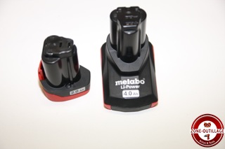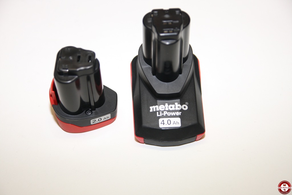 Les deux batteries livrées sont de capacités différentes. La première 2,0 Ah Li-Power est compacte et légère, elle offre plus de 33 % d’autonomie par rapport à l’ancienne version 1,5 Ah. La seconde batterie Li-Power de 4,0 Ah est légèrement plus volumineuse, elle est équipée d’un témoin de charge et double l’autonomie de la PowerMaxx Metabo. Un éclairage LED est présent sous la bague de réglage de couple.