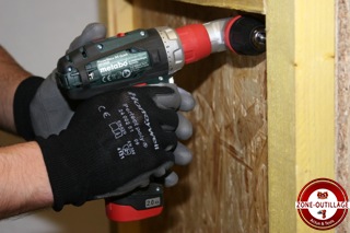 Le vissage est son point fort même si l’on perd un peu de couple avec le renvoi d’angle, l’outil fait bien son travail. Les agenceurs apprécieront l’éclairage LED qui favorisera le travail dans les endroits sombres et sa broche magnétique à six pans creux qui sans le mandrin, la PowerMaxx deviendra une machine extrêmement légère et compacte (122 mm) pour les travaux de vissage. Le nouveau coffret Metalock peut accueillir différents accessoires, il présente la particularité d’être empilable.