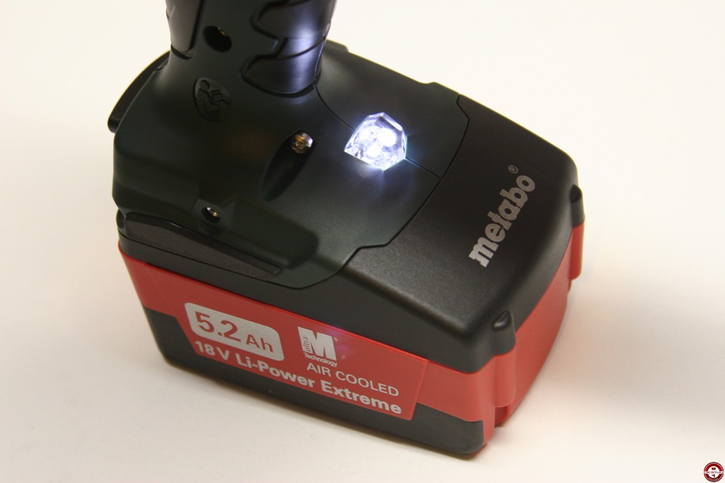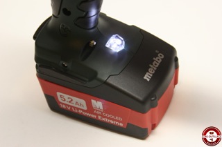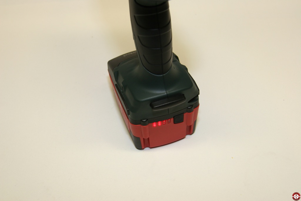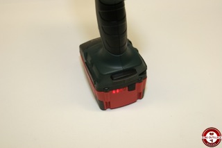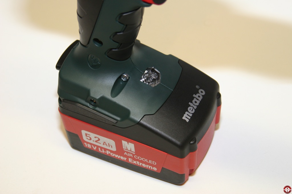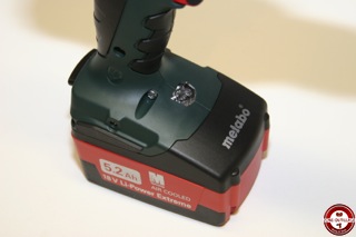 La nouvelle batterie 5.2 Ah est similaire à la version 4.0 Ah en terme de poids et taille. Elle dispose d’un indicateur de charge restante avec 4 LED. Elle s’insère par glissière à l’arrière de la machine. La perceuse visseuse Metabo pèse 1,8 kg ce qui la situe dans la moyenne face à la concurrence. Un porte-outil et un clip ceinture sont fournis dans le coffret.