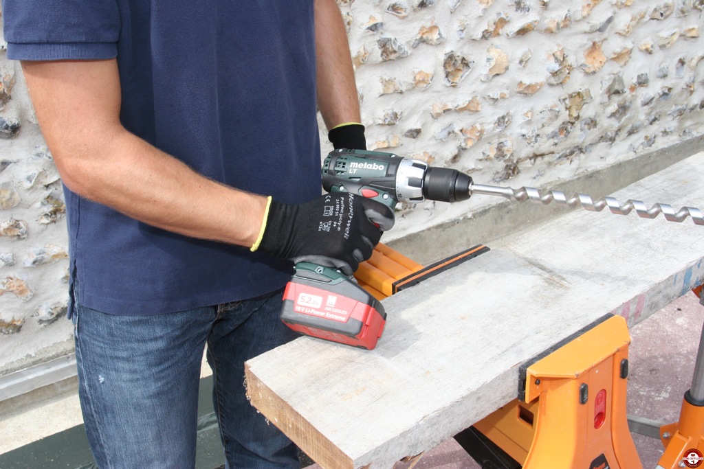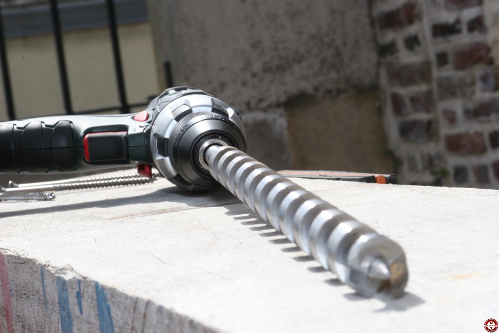 La manipulation de l’inverseur de rotation est aisée de plus la gâchette large et sensible. Aucune critique sur le côté de l’ergonomie de la machine. Lors de notre test, nous avons utilisé un foret de 20 × 500 mm pour transpercer 400 mm de bois dur. Nous avons utilisé la deuxième vitesse pour solliciter au maximum la machine. Elle a percé 60 % avant de se mettre en sécurité afin de ne pas endommager le moteur. En vitesse 1 la perceuse Metabo progresse doucement, mais ne montre aucun signe de faiblesse. Grâce à ses deux vitesses (0 - 450 / 0 - 1.600 / min), le perçage du métal en 4mm et 10 mm ont été concluants. Au vissage, la puissance n’est pas en reste, le moteur quadripolaire ne faiblit pas et permet de noyer les vis Fischer 6×120 et des tirefonds de 8mm.