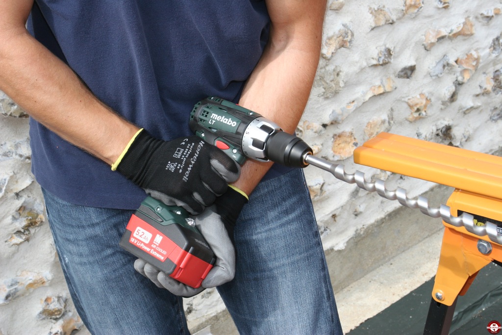 Toutes les grandes marques ont répondu aux besoins des professionnels en renouvelant leur gamme de batteries en passant de 3.0 Ah à 4.0 Ah offrant ainsi 33 % d’autonomie en plus. Metabo en exclusivité mondiale propose une batterie 5.2 Ah soit 75 % d’autonomie en plus par rapport à une batterie 3.0 Ah. Nous avons testé la perceuse-visseuse BS18 LT couplée à la batterie 5.2 Ah LI-Power.