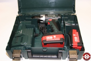 La visseuse est livrée dans un coffret compact avec 2 batteries 5.2 Ah li-power et le chargeur avec le système air-cooled. La machine est compacte, la poignée est recouverte d’un gainage efficace et le diamètre de la poignée permet une bonne prise en main.