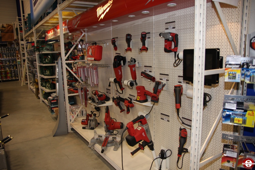 Le lieu n’a pas été choisi au hasard puisque c’est un point de passage essentiel pour les professionnels du bâtiment qui souhaitent s’équiper en matériaux, en outillage à main ou électroportatif. De plus, un présentoir à l’effigie de la marque dans le rayon outillage électroportatif est présent directement dans la boutique.