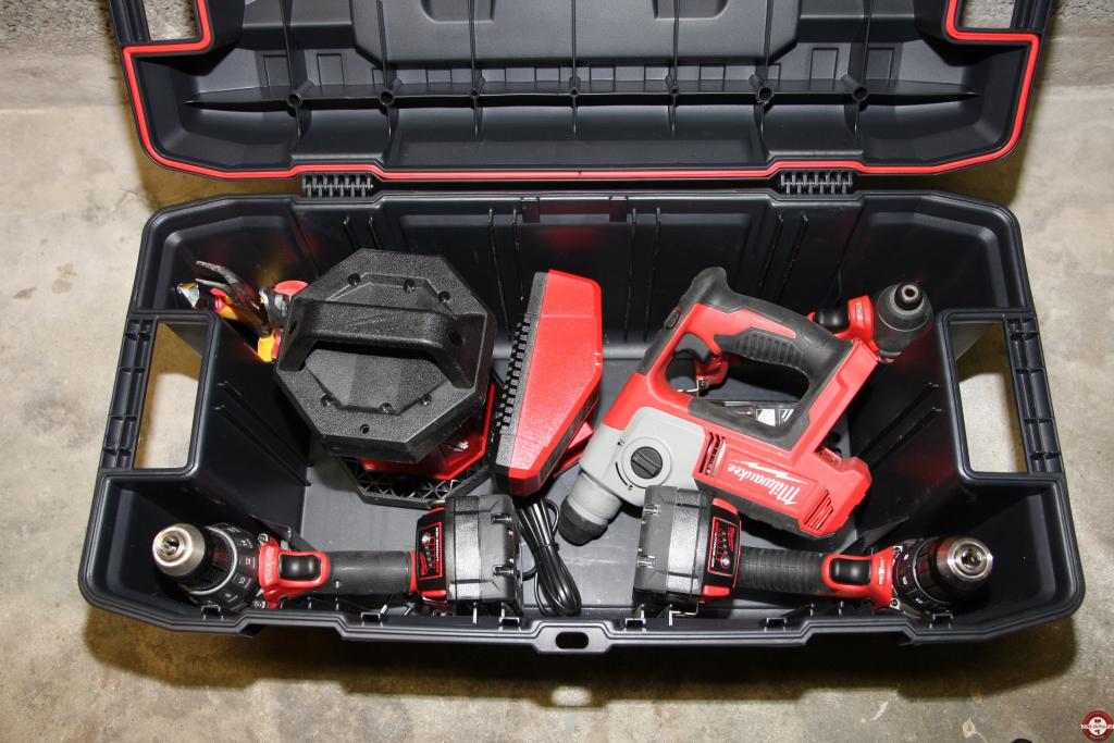 Pionnier dans les technologies sans fil, le fabricant d’outillage Milwaukee complète son catalogue avec un pack NRJ composé de deux batteries RedLithium-Ion 18 V / 5,0 Ah, d’un chargeur universel M12-18 C dans une caisse à outils WorkBox entièrement hermétique avec joint d’étanchéité, pouvant contenir plusieurs machines, batteries et accessoires. Cette caisse à outils (660 x 350 x 310 mm) robuste et empilable, est équipée d’un plateau amovible ou encore sur le dessus d’une rainure de coupe de serrage.