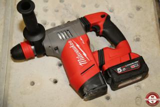 Le perforateur burineur M18CHPX-502C Milwaukee est livré en coffret avec deux batteries M18 RedLithiun-ion 18 V 5,0 Ah, un chargeur et un système d’aspiration des poussières. Les nouvelles batteries M18 5,0 Ah sont 20 % plus autonomes que les versions 4,0 Ah.
