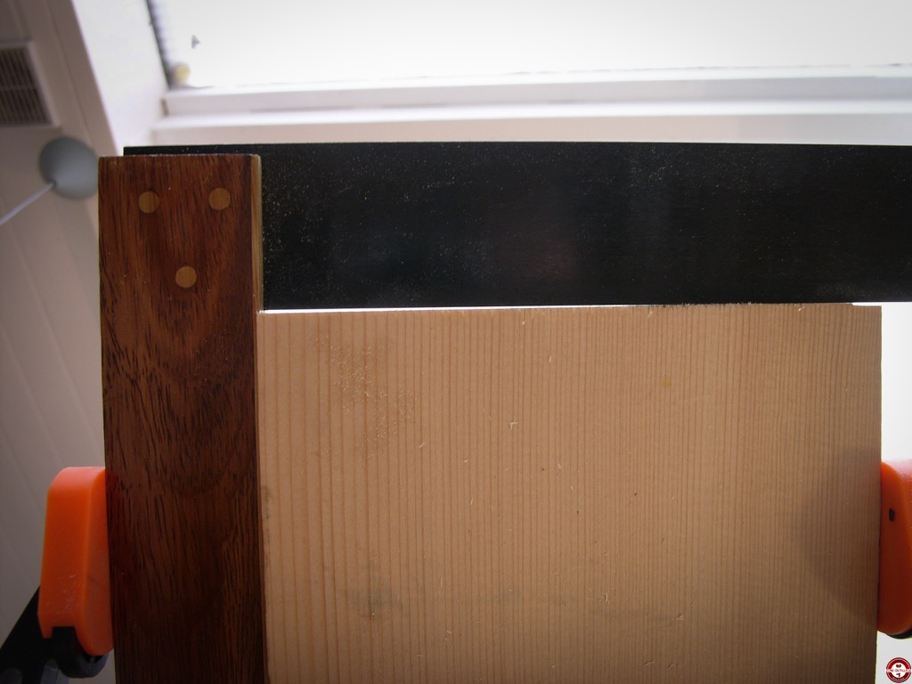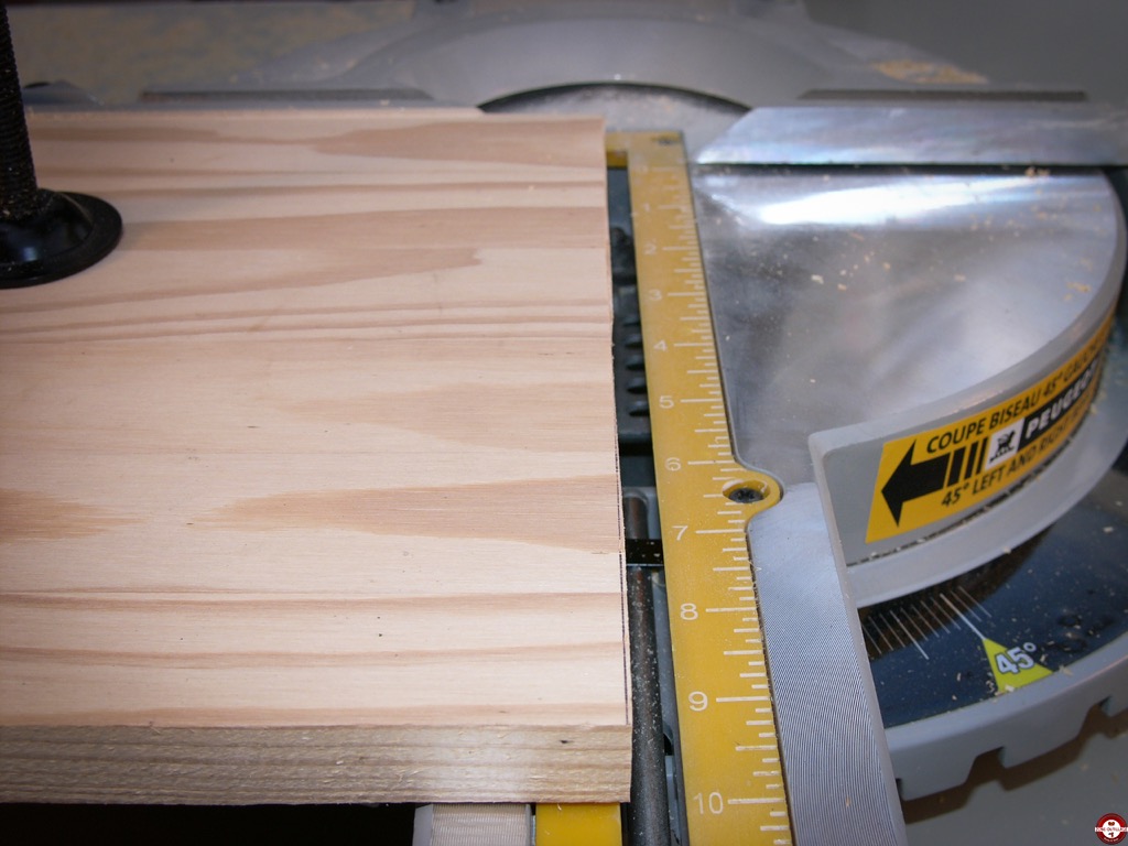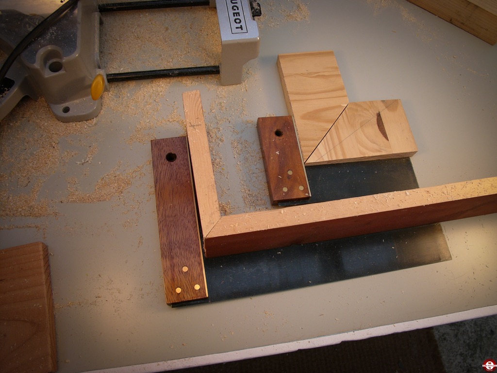 Même principe d’autocollant pour les graduations de coupe d’onglet, on voit également les encoches pour le blocage rapides aux angles les plus courants.