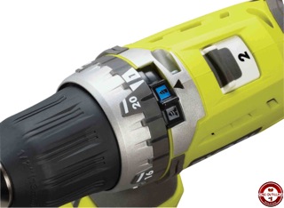 La nouvelle perceuse-visseuse RYOBI® est équipée du système By-Pass. Ce curseur situé sur le dessus de la bague permet par simple déplacement latéral de passer, en une seconde, du mode vissage au mode perçage sans avoir à intervenir sur la bague du mandrin, ni dérégler le couple déjà sélectionné pour visser.