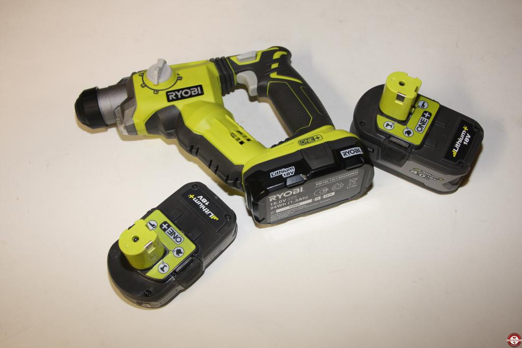 La version R18SDS-0 à 129,99 € est livrée en carton sans batterie ni chargeur. Libre à l’utilisateur d’acheter le type de batterie en fonction de ses besoins où s’il est déjà équipé d’un outil Ryobi 18 V, les batteries seront compatibles avec le nouveau marteau perforateur Ryobi R18SDS. Nous l’avons essayé avec toutes les batteries ancienne génération pour s’assurer de la rétrocompatibilité et les batteries dernières générations qui présentent l’avantage d’être dotées de la technologie Ryobi IntelliCell™ qui analyse et optimise de manière homogène le débit et la charge des cellules afin de maximiser l’autonomie, la durée de vie et la sécurité de la batterie. Les batteries 1,5 Ah, 2,5 Ah et 4,0 Ah sont équipées d’un indicateur de niveau de charge intégré. À noter que les batteries Ryobi n’ont pas d’effet mémoire et ne risquent donc pas l’autodécharge, même après des semaines d’inactivité.