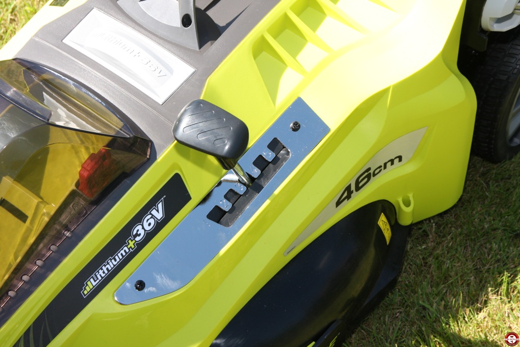 La grande nouveauté de cette version est le passage de la batterie 4,0 Ah au 5,0 Ah. Cette nouvelle batterie 5,0 Ah est équipée de la technologie IntelliCell, les cellules de la batterie sont gérées individuellement lors de la charge et la décharge, maximisant l’énergie stockée. Elle contrôle les performances de chacune des cellules de la batterie pendant la recharge et l’utilisation. Elle n’a pas d’effet mémoire, le jardinier peut recharger la batterie quand il le souhaite sans se soucier des pertes de performances. La batterie RYOBI 5,0 Ah Lithium-Ion IntelliCell est équipée d’une protection contre la surcharge et d’une protection thermique contre les surchauffes. Ces deux éléments permettent de préserver significativement la durée de vie de la batterie lors d’une utilisation intensive. Enfin, comme toutes les batteries 36 V de la gamme, la nouvelle batterie 5,0 Ah dispose d’un indicateur de niveau de charge à LED. Le chargeur fourni charge 60 % en 120 mn et à 100 % en 200 min la batterie 5,0 Ah, on aurait aimé une nouvelle génération de chargeur plus rapide pour ces nouvelles batteries toutefois, le jardinier peut utiliser ses anciennes batteries 4,0 Ah pour alimenter la tondeuse sans fil.