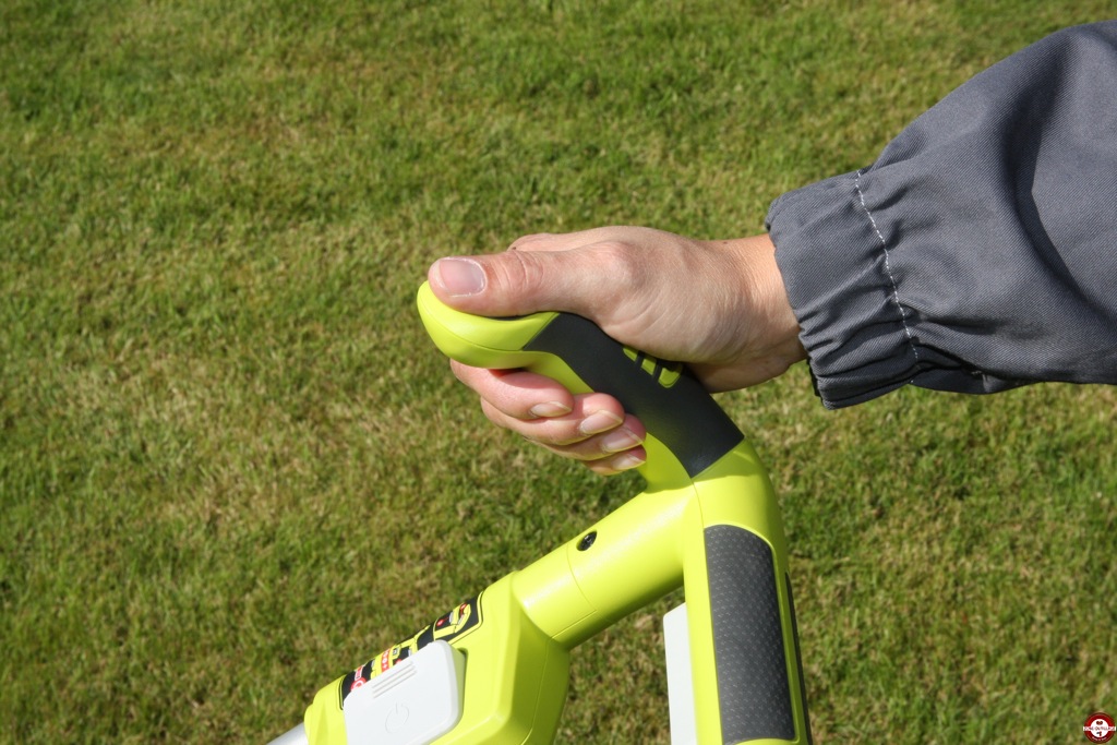 Les poignées doubles commandes sont recouvertes d’un grip confortable, la prise en main est ferme. Un indicateur de charge en temps réel est présent entre les deux poignées évitant ainsi à l’utilisateur de devoir s’abaisser pour vérifier la charge de la batterie.
