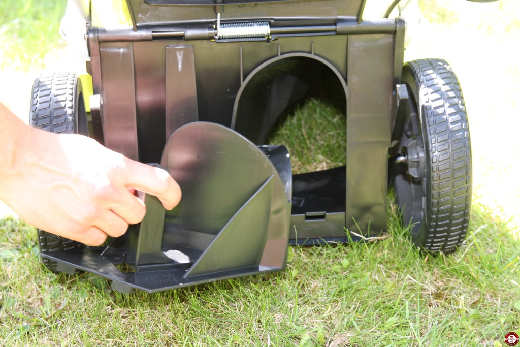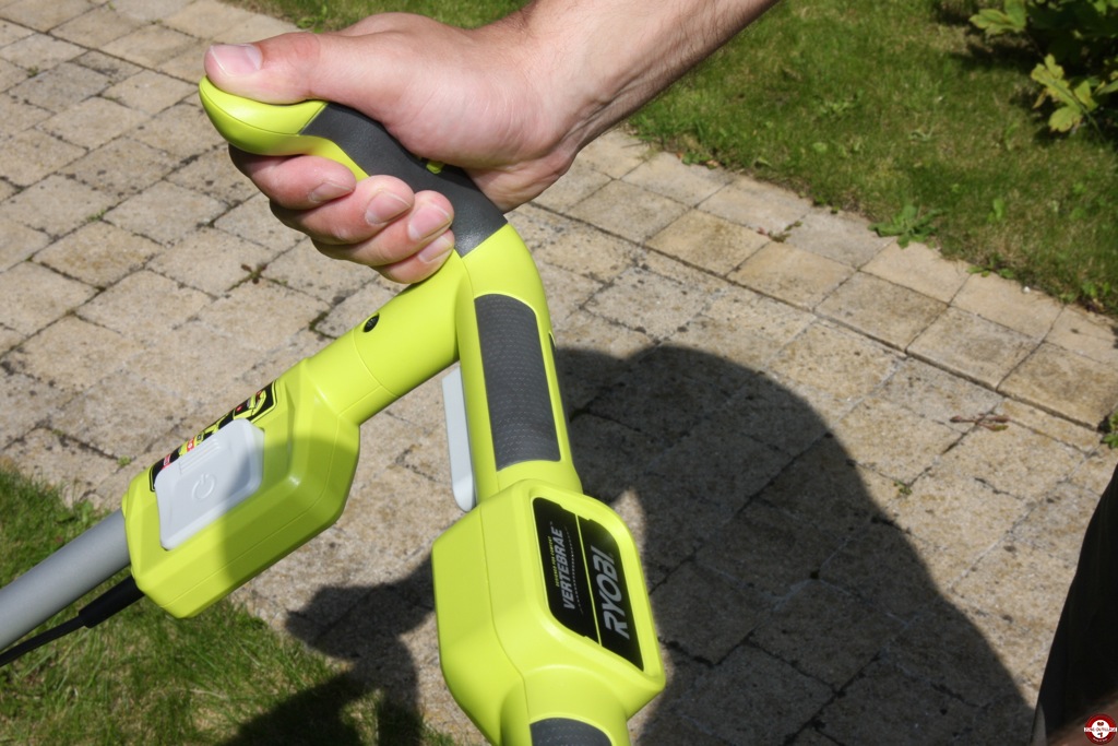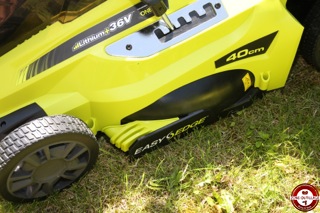 Lors de la tonte le long d’un mur ou au ras d’un massif de fleurs, la tondeuse sans fil RYOBI est équipée sur chaque côté d’un rabatteur d’herbe que nous avons testé le long d’un mur et au ras d’un massif de fleurs, les résultats sont satisfaisants.