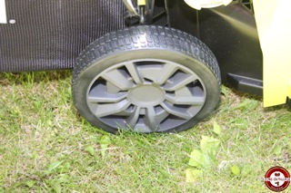 Les larges roues arrière sur roulement à billes facilitent les déplacements notamment pour contourner les obstacles ou sur les terrains vallonnés, mais son poids la limite aux terrains sans trop de dénivelés. Sa largeur de coupe de 40 cm offre de bonnes performances et permet de travailler rapidement.
